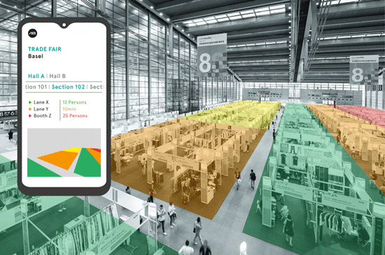 The Trade Show Tracker helps exhibitors and fair organisers optimise effectiveness across the board. With sensor technology mounted on booths, it records the flow of people creating a real-time picture of the number of visitors while also identifying popular places and dead spots. Sensors also measure and evaluate the length of stay and level of interaction at each booth, and can highlight potential weak points and areas for improvement.